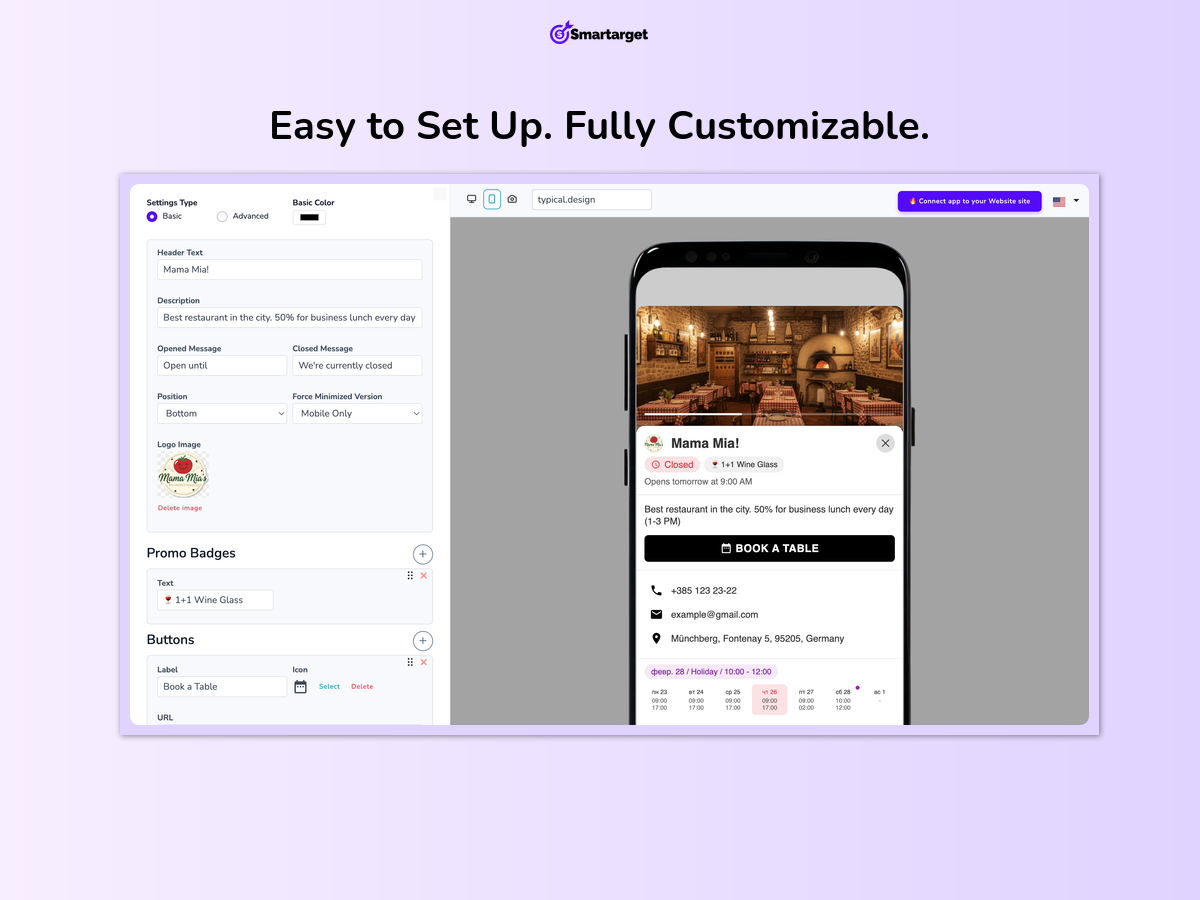 • Add a call to action button so customers can reserve a table, book an appointment, and more