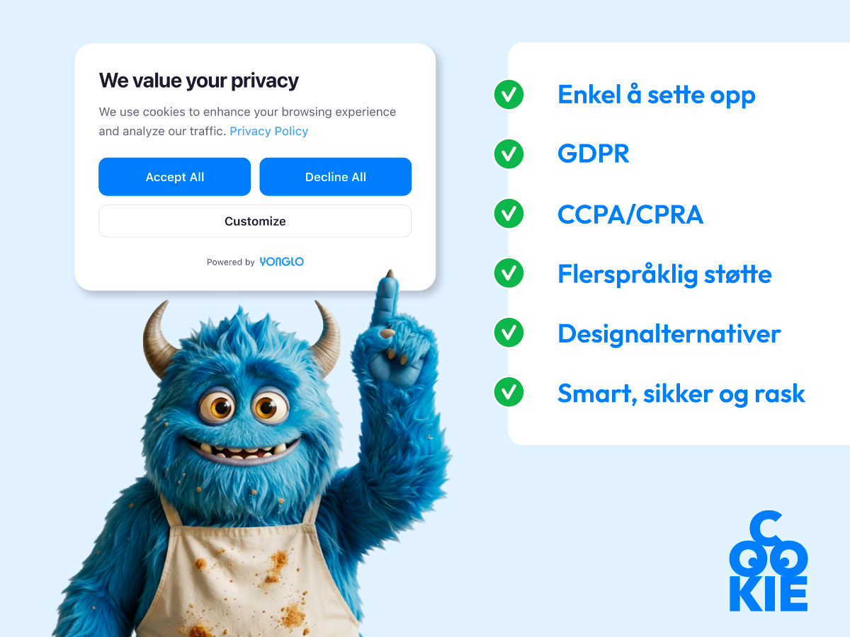 Alle sporings- og analyseskript forblir blokkert til besøkende eksplisitt gir sitt samtykke. Popup-vinduet kan ikke lukkes uten at brukeren tar et valg, noe som sikrer at hver besøkende aktivt velger sine personverninnstillinger før de fortsetter. Denne tilnærmingen er i tråd med kravene i GDPR, CCPA og CPRA.