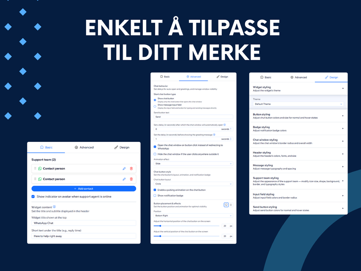 • Smart kontaktfordeling: La besøkende raskt nå riktig person eller team for raskere support