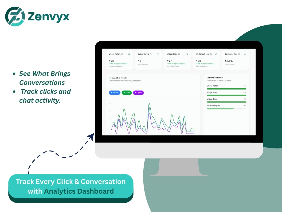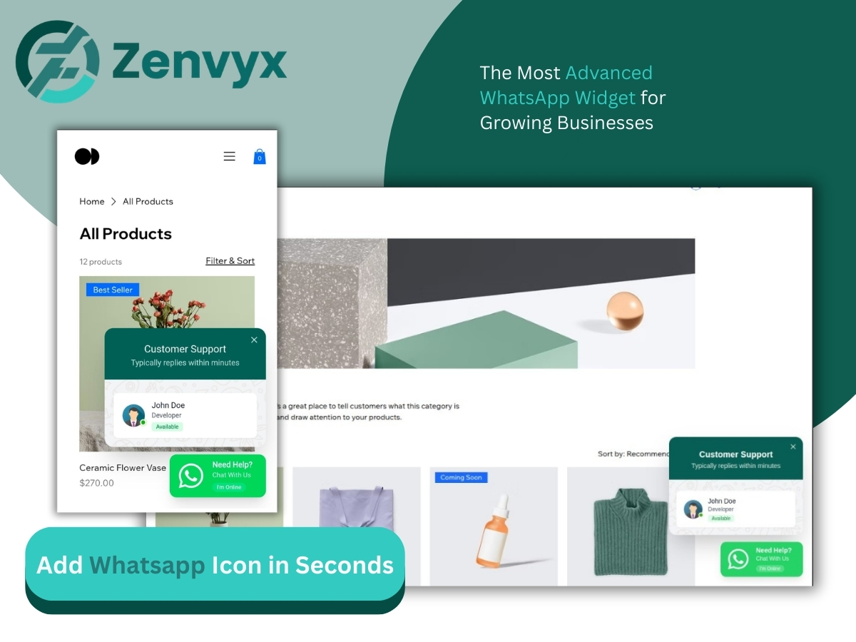 WhatsApp Chat Button by Zenvyx helps you turn website visitors into real conversations using WhatsApp, a trusted and familiar messaging platform used by billions worldwide. With a simple setup, you can add a professional WhatsApp chat button to your website and allow visitors to contact you instantly. Instead of leaving your site to search for emails or forms, users can reach out in a faster and more comfortable way directly through WhatsApp. The app offers full control over the chat experience. Customize the button design, position, colors, icons, and welcome messages to match your brand. You can add multiple team members or departments so visitors can choose who they want to contact, improving response quality and efficiency. Pre-filled messages help start conversations instantly, while cross-device compatibility ensures smooth performance on both mobile and desktop using WhatsApp app or web. Designed for businesses that value serious customer communication, WhatsApp Chat Button by Zenvyx delivers a fast, reliable, and professional chat experience that boosts engagement, trust, and conversions.